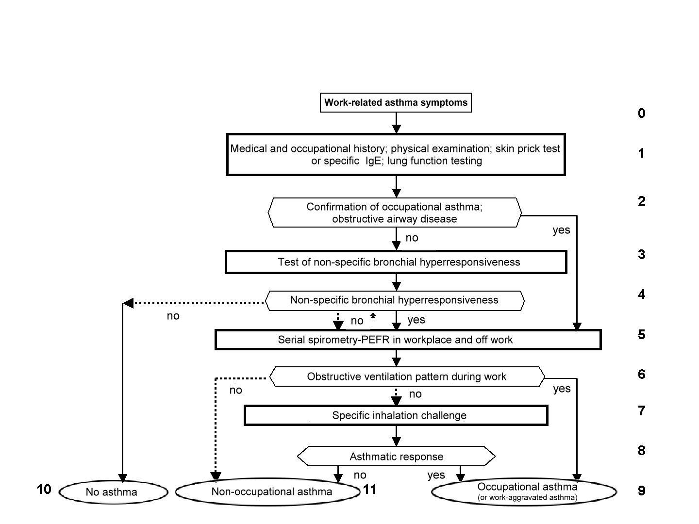 The following scheme shows the diagnostic procedure for work-related asthma.